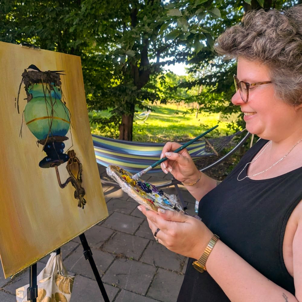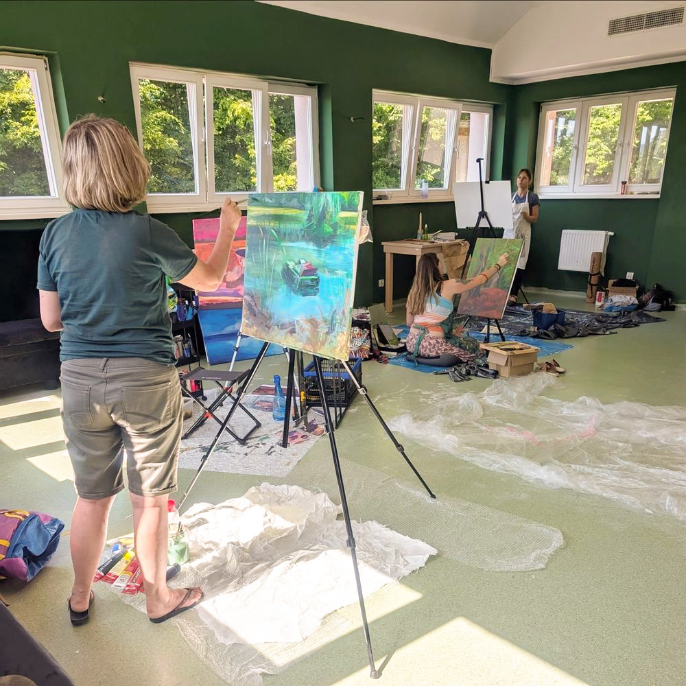 Malowanie natury niesie ze sobą rozwój, relaks i satysfakcję, ale opcje się na tym nie kończą. Wiele jest możliwe przy wsparciu artystki z ponad 20-letnim doświadczeniem zawodowym. Niektórzy uczestnicy naszych plenerów malują z wyobraźni albo własnych zdjęć i projektów, inni rysują, malują cyfrowo czy nawet rzeźbią. Wybraliśmy najdłuższe w roku lipcowe dni, by pozwoliły nam maksymalnie wykorzystać dzienne światło, a w przypadku niepogody mamy do dyspozycji kilka zadaszonych miejsc, w tym sporą salę konferencyjną zaadaptowaną na pracownię, która będzie dostępna nawet do późnych godzin nocnych (dla wytrwałych:)).